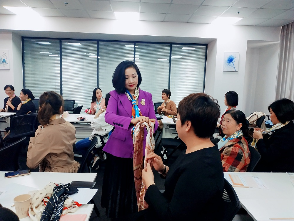 此次會員公開課,不僅使會員朋友們對絲巾搭配有更深的認(rèn)識,同時也增強了其動手能力和自信心,運用絲巾來“潤色全身,頸上添花”,得到了大家的普遍喜愛和贊揚。