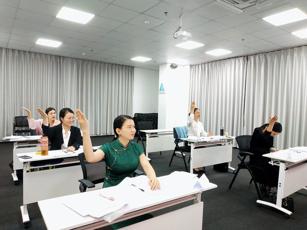 上午學(xué)習(xí)時(shí)間段,首先,時(shí)淑妍老師幫助全體學(xué)員了解禮儀培訓(xùn)師行業(yè)、職業(yè)發(fā)展方向與前景;接著,時(shí)淑妍老師帶領(lǐng)全體學(xué)員進(jìn)行莊嚴(yán)的禮儀培訓(xùn)師宣誓,作為禮儀培訓(xùn)師,堅(jiān)持為弘揚(yáng)發(fā)展、傳承禮儀文化,不斷努力。我們謹(jǐn)記使命,肩負(fù)責(zé)任,砥礪前行。