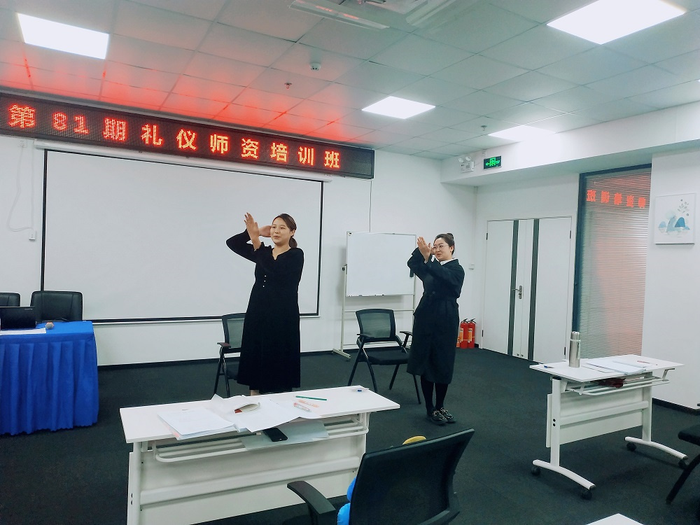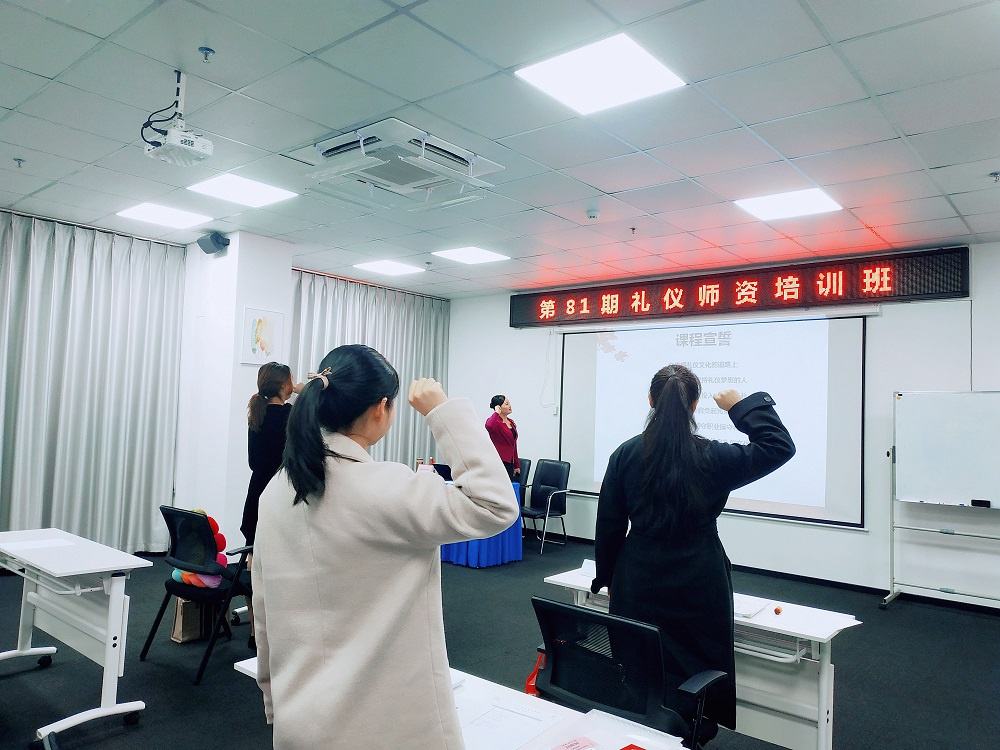 學(xué)員們進(jìn)行禮儀培訓(xùn)師宣誓儀式