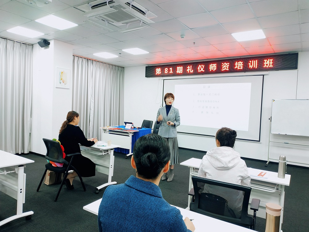宣誓結(jié)束后,時淑妍老師給大家講授了《禮儀應(yīng)用基礎(chǔ)梳理》課程。時老師為學(xué)員們講授了禮儀培訓(xùn)師的形象塑造,并系統(tǒng)梳理了四大類的禮儀知識。
