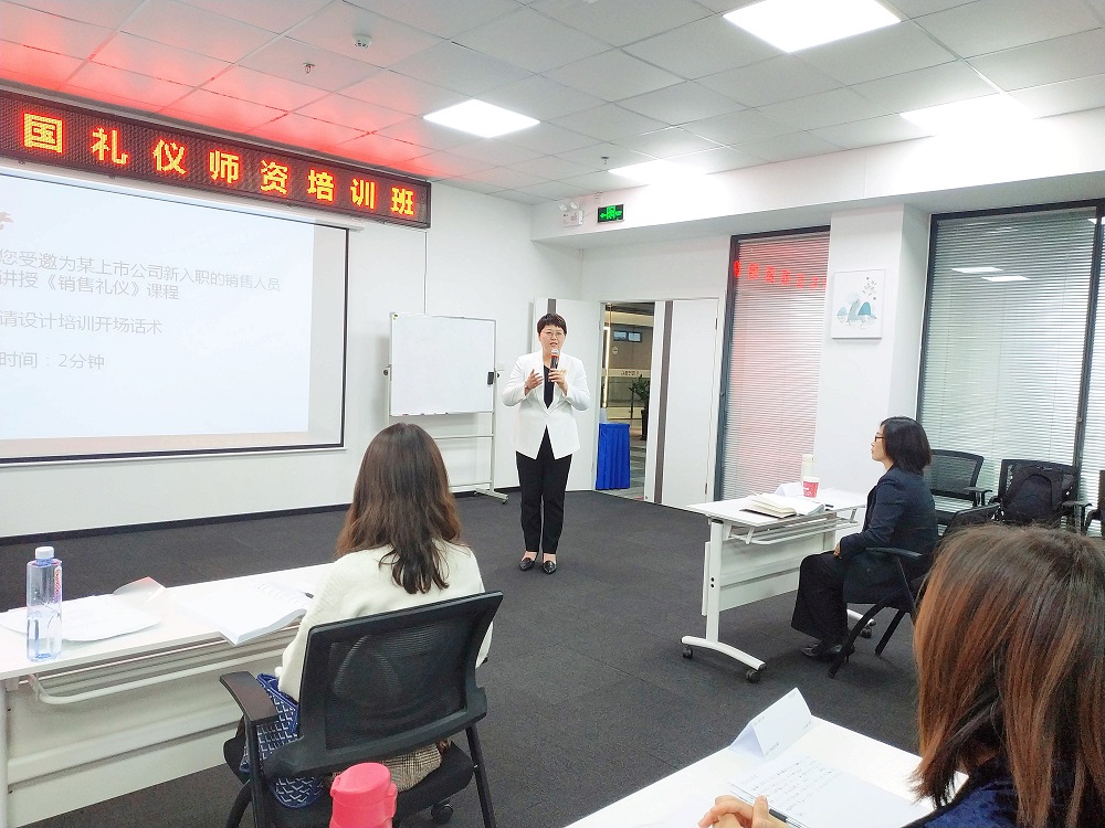 當(dāng)天下午課程,由時(shí)淑妍老師為師資班學(xué)員們進(jìn)行《實(shí)際、實(shí)用、實(shí)效的禮儀教學(xué)體系》和《禮儀培訓(xùn)師的實(shí)用培訓(xùn)技巧》課程講授。