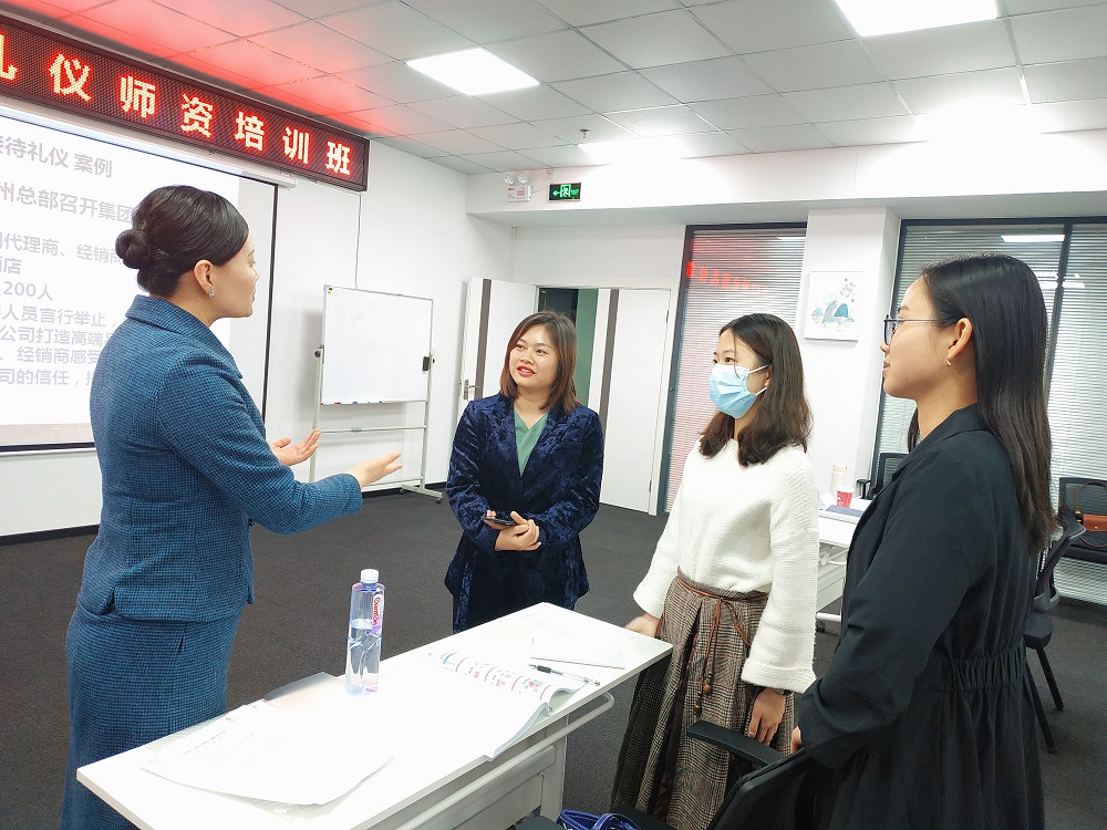晚間學(xué)習(xí),時(shí)淑妍老師為學(xué)員們講授《禮儀培訓(xùn)師的實(shí)用培訓(xùn)技巧》課程。作為一名職業(yè)的禮儀培訓(xùn)師,要注重職業(yè)的形象、臺(tái)風(fēng)、語(yǔ)言表達(dá)等細(xì)節(jié)培訓(xùn)技巧;如何與受訓(xùn)方進(jìn)行溝通,如何設(shè)計(jì)培訓(xùn)方案、如何開展禮儀培訓(xùn)工作,時(shí)淑妍老師都逐一傳授經(jīng)驗(yàn)給方法技巧給學(xué)員們。