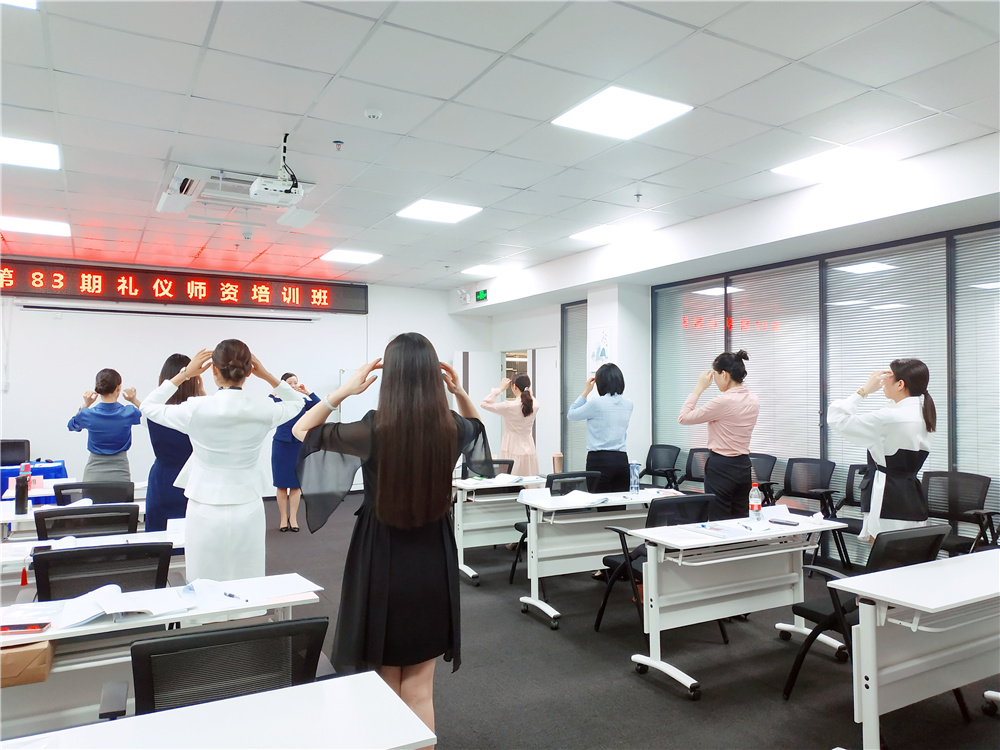 學(xué)員們進(jìn)行禮儀培訓(xùn)師宣誓儀式