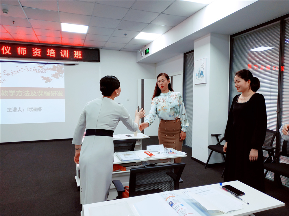 時(shí)淑妍老師為學(xué)員們講授了作為禮儀培訓(xùn)師職業(yè)風(fēng)采的禮儀細(xì)節(jié),并讓學(xué)員們逐一練習(xí),通過指導(dǎo)力求讓每位學(xué)員都能盡快掌握禮儀培訓(xùn)師的現(xiàn)場(chǎng)授課的風(fēng)采及技巧。