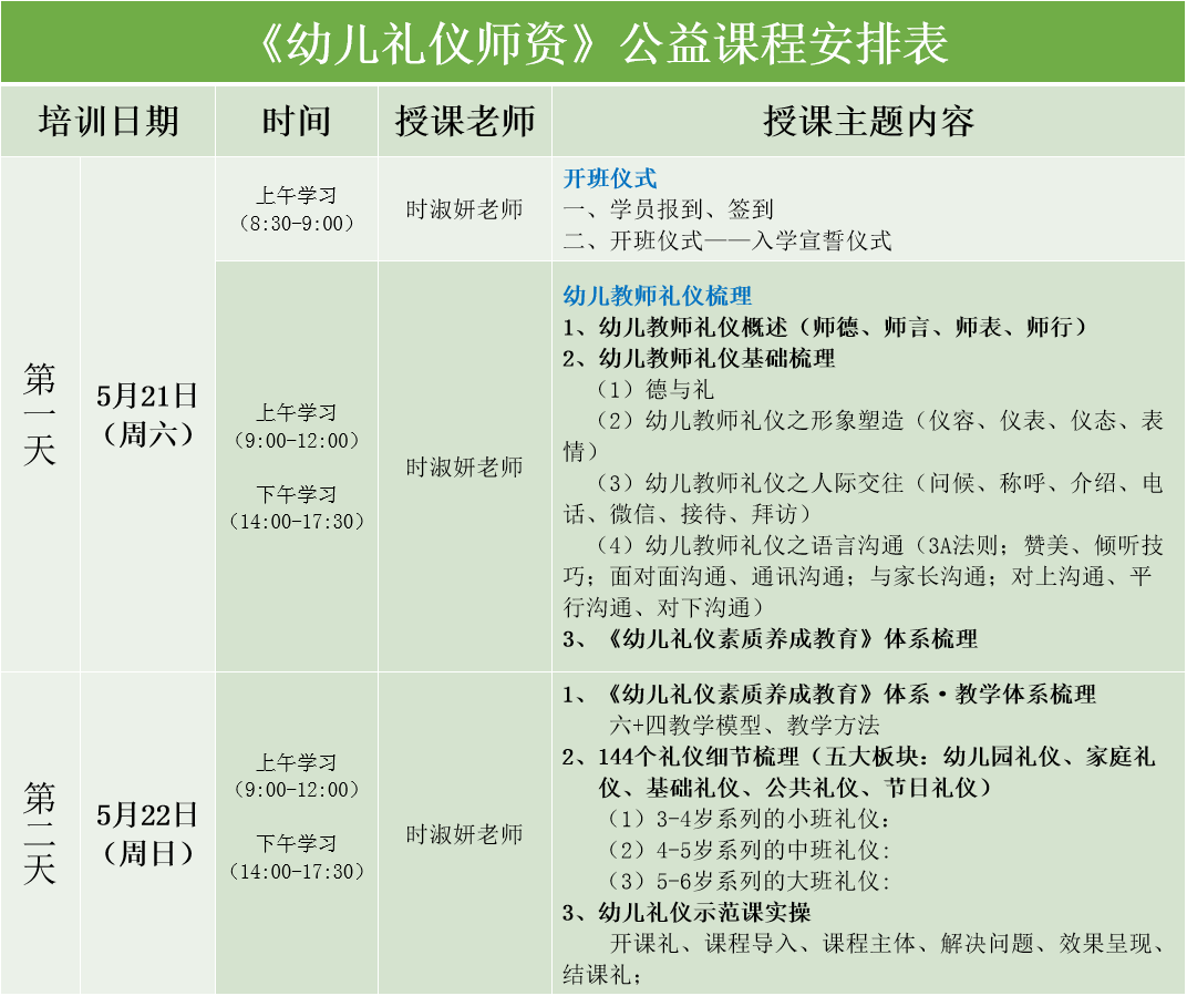 禮儀作為內(nèi)在的品德、品質(zhì)、修養(yǎng)的承載體和言行舉止、待人接物、與人交往溝通具體行為表達(dá),是成長至關(guān)重要的素質(zhì),也是好家風(fēng)家教的成果展現(xiàn),更是社會文明程度的體現(xiàn)。為了解決幼兒禮儀培訓(xùn)師資緊張的問題,幫助幼兒禮儀教育工作者掌握禮儀訓(xùn)練內(nèi)容和教學(xué)規(guī)范、增強(qiáng)實際應(yīng)用授課能力、提高師資水平,建立幼兒禮儀授課專業(yè)教師隊伍,增強(qiáng)禮儀實際應(yīng)用及教育成果轉(zhuǎn)化,廣州市禮儀協(xié)會、廣州市德禮教育將于2022年5月21日—22日在廣州開展《幼兒禮儀培訓(xùn)師》公益培養(yǎng)計劃。詳情如下: